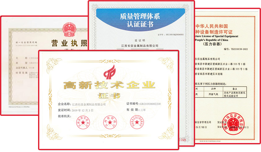 江西長(zhǎng)征金屬制品有限公司,原大型航天軍工企業(yè)江西長(zhǎng)征機(jī)器廠,是國家勞動(dòng)部定點(diǎn)生產(chǎn)氣瓶的專業(yè)廠家。公司擁有雄厚的軍工技術(shù)力量,設(shè)備先進(jìn),檢測(cè)手段完備,按照GB/T5100標(biāo)準(zhǔn)和GB/T5842標(biāo)準(zhǔn)、GB/T17673標(biāo)準(zhǔn)要求,建立了嚴(yán)格的企業(yè)管理制度和完整有效的產(chǎn)品質(zhì)量保證體系。